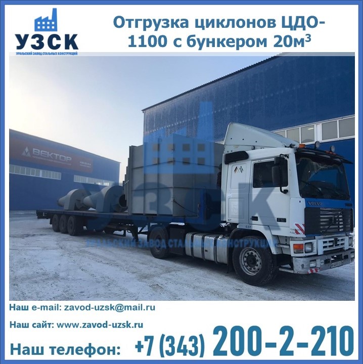 Циклоны ЦДО-1100 с бункером на 20 кубов были отгружены в декабре 2018 года в г. Новосибирск Калуга.