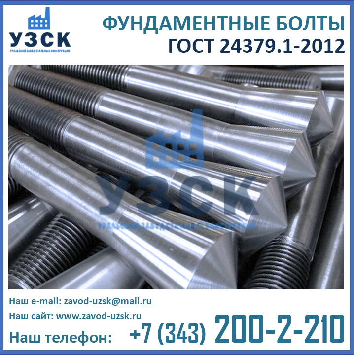 Приобретая болты ГОСТ 24379.1-2012 напрямую у завода-изготовителя вы не переплачиваете многочисленным посредникам. Кроме того, при обширных объемах закупки завод УЗСК предлагает скидки на анкерные болты М 12, М 16, М 20, М 24, М 30, М 36, М 42, М 48, М 52, М 56, М 64, М 72, М 80 и М 90.