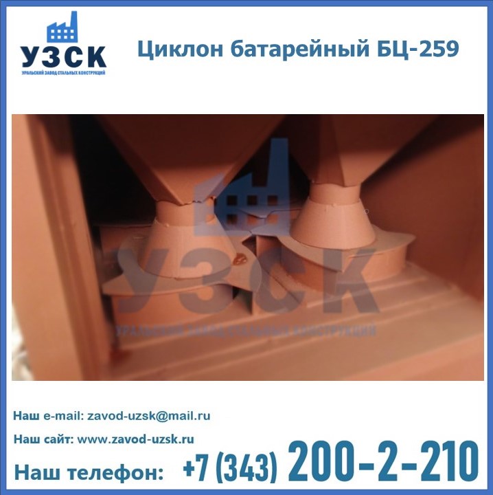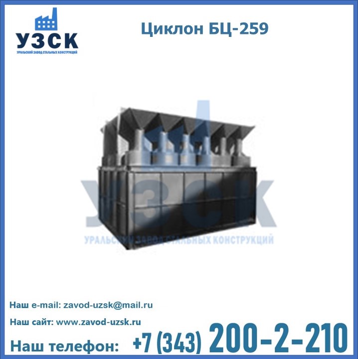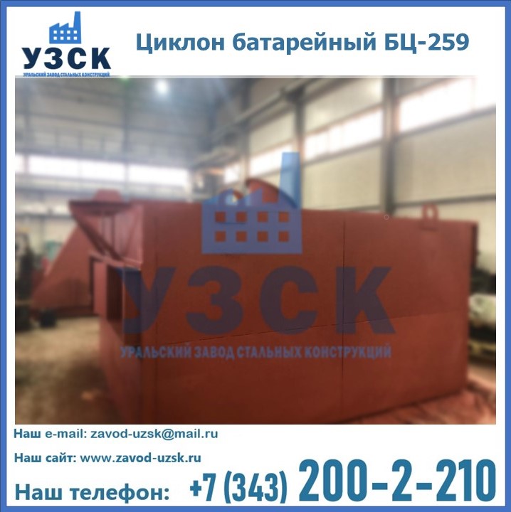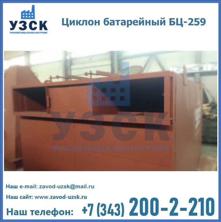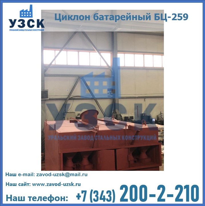 Приобрести качественное оборудование, в том числе, циклоны БЦ-259, можно в компании УЗСК в Калуге. Мы предлагаем долговечную и надежную продукцию по приемлемой цене. Заказать и купить циклоны или другие изделия высокого качества можно через сайт Уральского Завода Стальных Конструкций, или позвонив по указанному в разделе «Контакты» телефону.