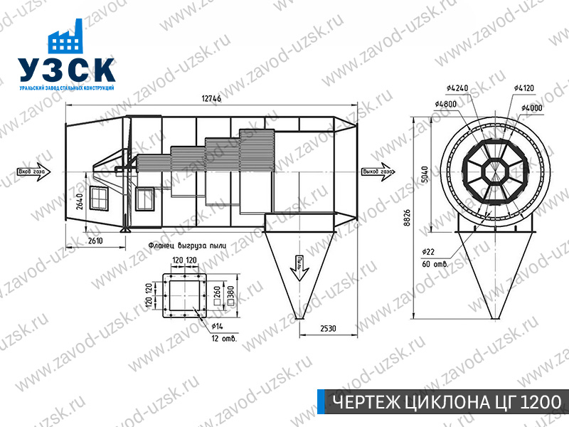 Горизонтальные циклоны-искрогасители ЦГ поставляются в Калуге в сборке или же транспортными единицами для последующей сборки, если предназначены для работы с большими объемами.