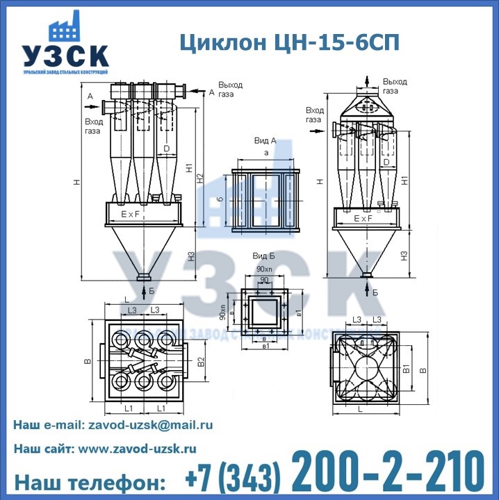 Завод «УЗСК» в Калуге предлагает большой выбор циклонов ЦН-15-900×6СП и прочих устройств, полностью укомплектованных и готовых к эксплуатации. Мы гарантируем соответствие оборудования всем требованиям ГОСТ и ТУ, износостойкость и высокую производительность предлагаемого оборудования. Уральский Завод Стальных Конструкций изготавливает и продает надежное, эффективное и производительное оборудование, имеющее длительную гарантию и большой эксплуатационный ресурс. Если требуется изготовить циклон нестандартных размеров, то такой вариант выполнения заказа тоже предусмотрен, так как предприятие имеет собственные производственные площади и надежных поставщиков. На все поставляемое или производимое оборудование имеются чертежи и прочая техническая документация. Заказать и купить циклоны или прочее оборудование высокого качества и по доступной цене можно через наш сайт или по указанному в разделе «Контакты» телефону.