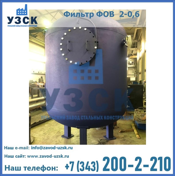 Удаление взвешенных веществ различного уровня дисперсности из рабочих жидкостей эффективно проводит фильтр осветлительный типа ФОВ (скорый или механический) — вертикально-цилиндрической формы установка, разработанная для систем водоподготовки различного класса. Оборудование представляет собой однокамерный агрегат для очистки воды рекомендованный для применения на станциях очистки стоков, в коммунальных котельных, на ТЭЦ, в промышленных отопительных системах и пр. Заказать производство ФОВ фильтров предлагает наш Уральский завод стальных конструкций в Калуге. У нас можно купить фильтрационное оборудование различного класса и типа, в том числе фильтры ФОВ из нержавеющей стали.