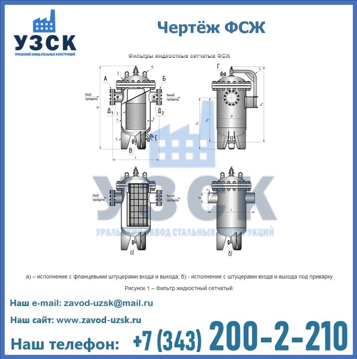 Очистку перекачиваемых жидкостей на предприятиях нефтяной, пищевой, горнорудной, фармацевтической и других отраслей промышленности эффективно выполнять с помощью жидкостного сетчатого фильтра — емкостное оборудование цилиндрической формы со съемной крышкой и элементом фильтрации внутри. Оснащенные им всасывающие линии насосных станций и установок защищены от проникновения твердых частиц в функциональные узлы гидравлической системы. Оборудование служит для перекачивания токсичных, агрессивных и иных эмульсий, суспензий, жидкостей. Купить фильтр сетчатый жидкостный ФСЖ в Калуге с гарантией производителя предлагает «Уральский завод стальных конструкций». Мы выполняем проектирование и изготовление ФСЖ по индивидуальным требованиям (климатическая зона, транспортируемая жидкость).