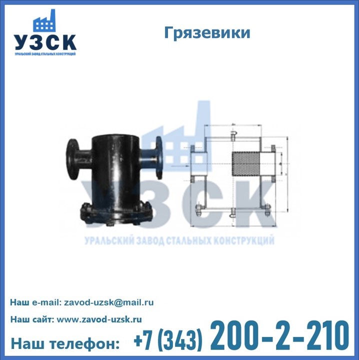 Уральский Завод Стальных Конструкций занимается производством и реализацией грязевиков в городе Калуга, в наличии устройства горизонтального и вертикального типа, соответствующие всем требованиям и стандартам, в том числе условиям «Правил устройства и безопасной эксплуатации».