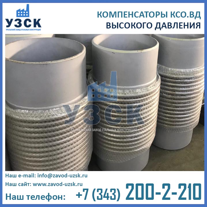 Компенсаторы высокого давления КСО ВД предназначены для компенсации температурных расширений трубопроводов и предохранения труб и сетевого оборудования от деформаций, возникающих под действием внутренних и внешних факторов. Помимо основной функции, КСО.ВД поглощает вибрации трубопроводов, а также способно восполнить незначительную несоосность труб, образующуюся при монтаже сети. Отличием от компенсаторов других типов, рассчитанных на давление 2,5 МПа, является способность компенсатора КСО-ВД выдерживать давление до 6,3 МПа (63 кгс/см2). У стандартных устройств в подобных условиях сильфон подвергается изгибу, неустойчивости и может быть поврежден.