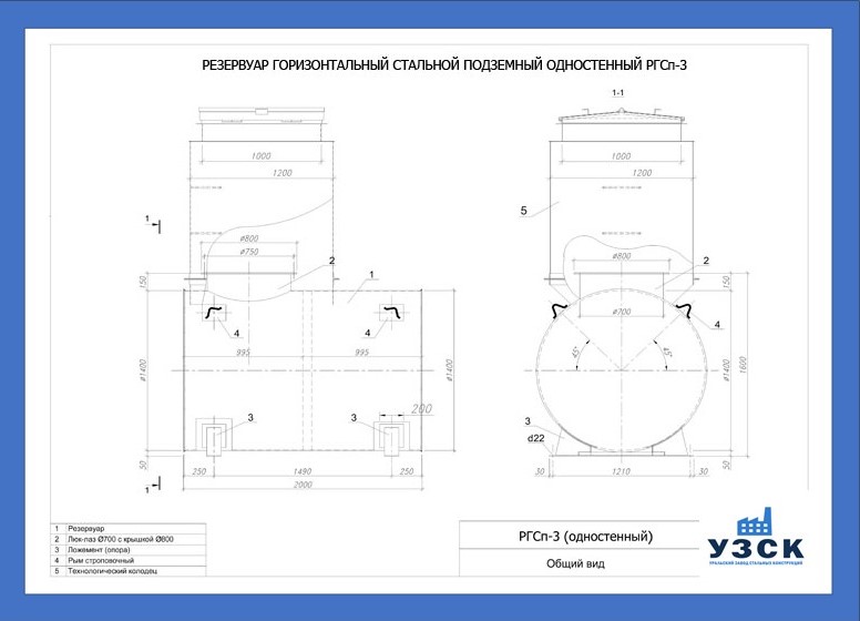 - РГСп-3: горизонтальный резервуар одностенный подземного расположения;